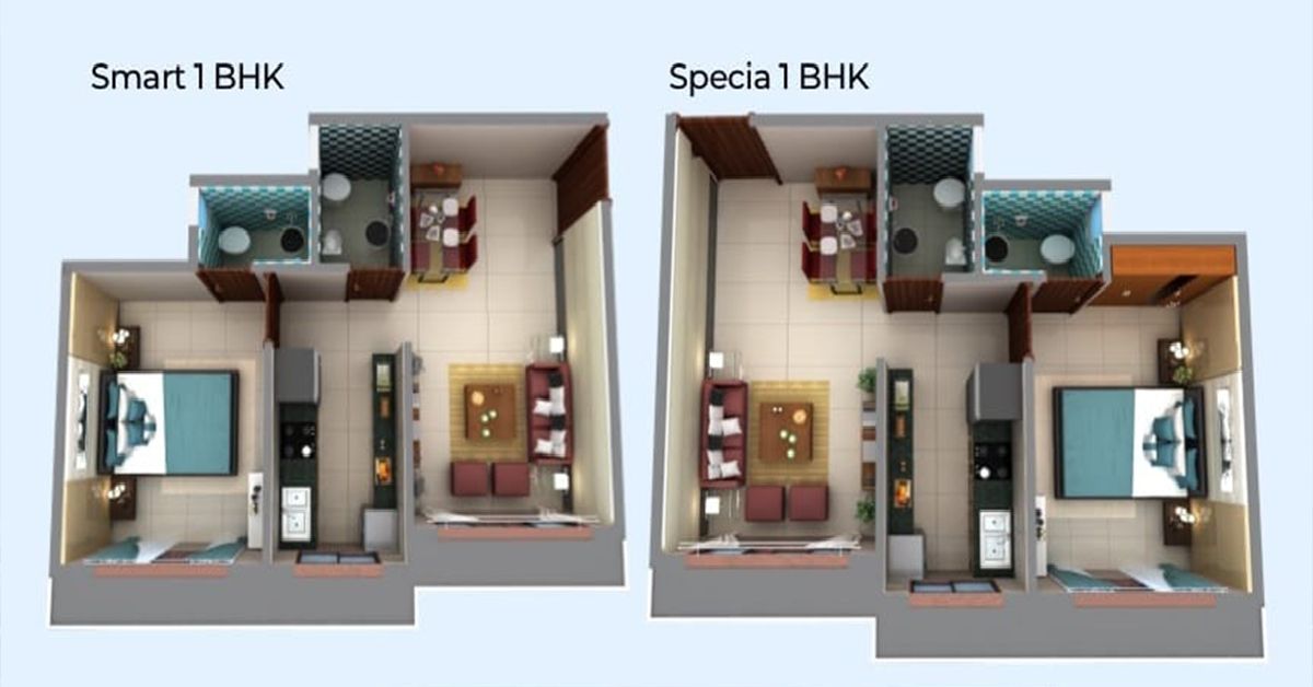 Navkar City offers a variety of residential units, including 1 BHK and 2 BHK apartments. These homes are designed to maximize space efficiency, ensuring that residents enjoy ample natural light and ventilation in every room.